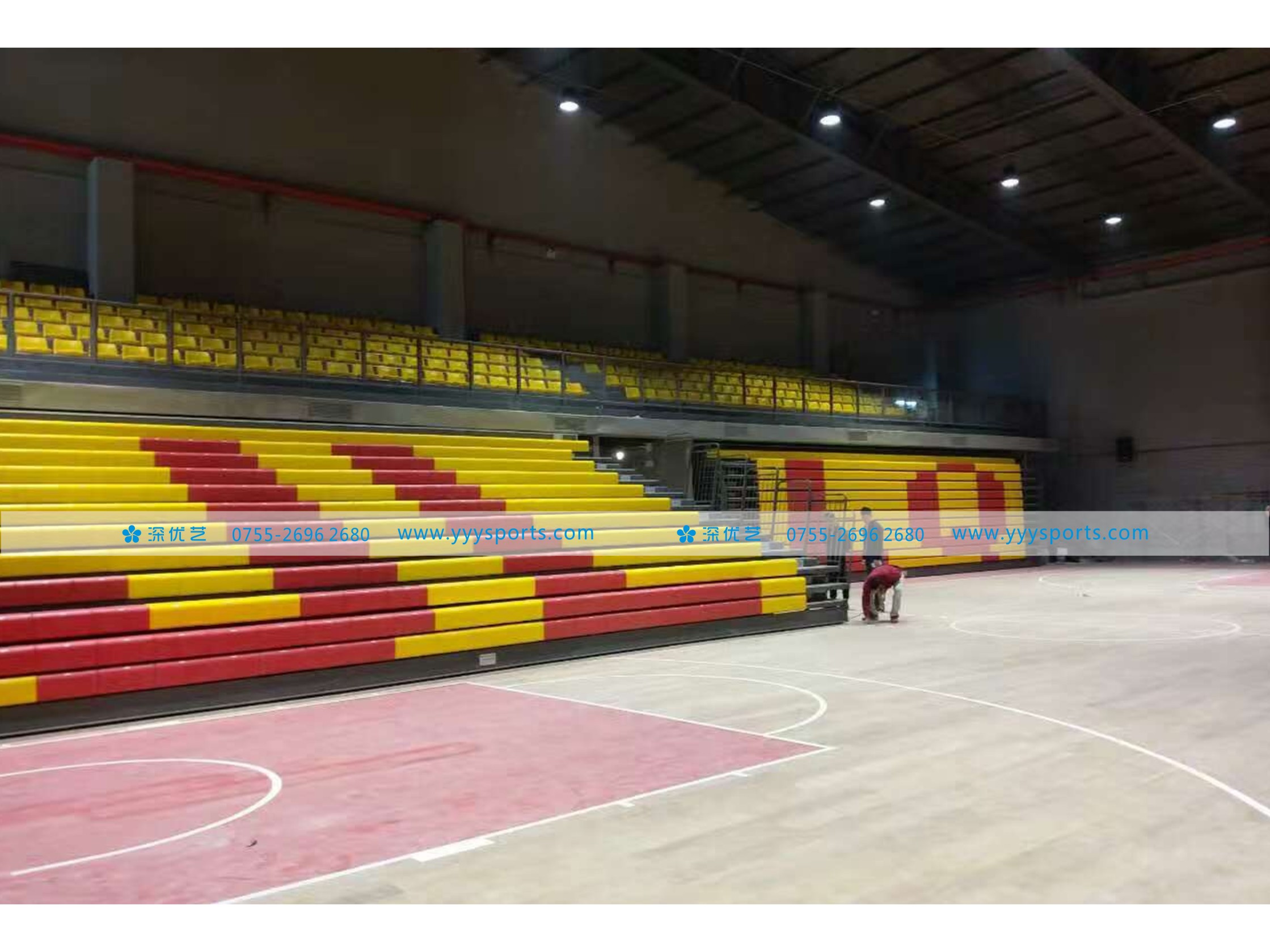 * 活動看臺采用優質鋼材做結構支撐,表面噴粉處理;