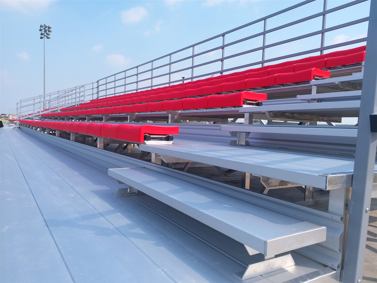 2.鋁合金看臺座椅:由于座椅都是經過電鍍或者拋光及烤漆處理等,養護就比較簡單了,日常只要用洗刷劑用綿布擦洗可以。如有發生氧化,可以用鋁合金專用養護產品,每季擦洗一次,保持光鮮亮麗即可。